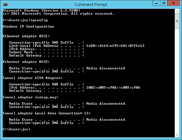In the example above we see that there is an IPv6 address and the 6to4 virtual adapter. We’ll need to add a registry key to disable IPv6.