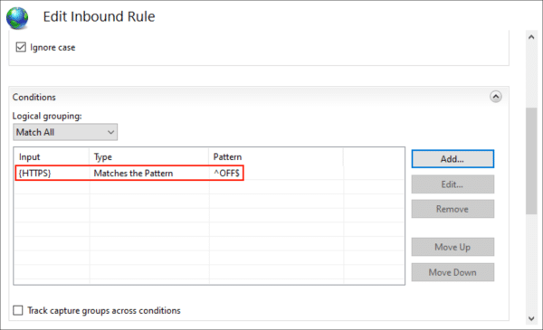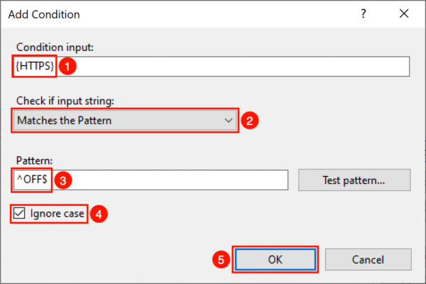 - Type {HTTPS} in the Condition input field.
