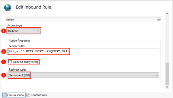 - Select Redirect as the Action type.