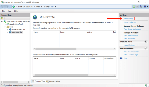 - Download and install the IIS URL Rewrite module, then launch IIS Manager.