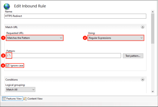 - Set Requested URL: to Matches the Pattern.